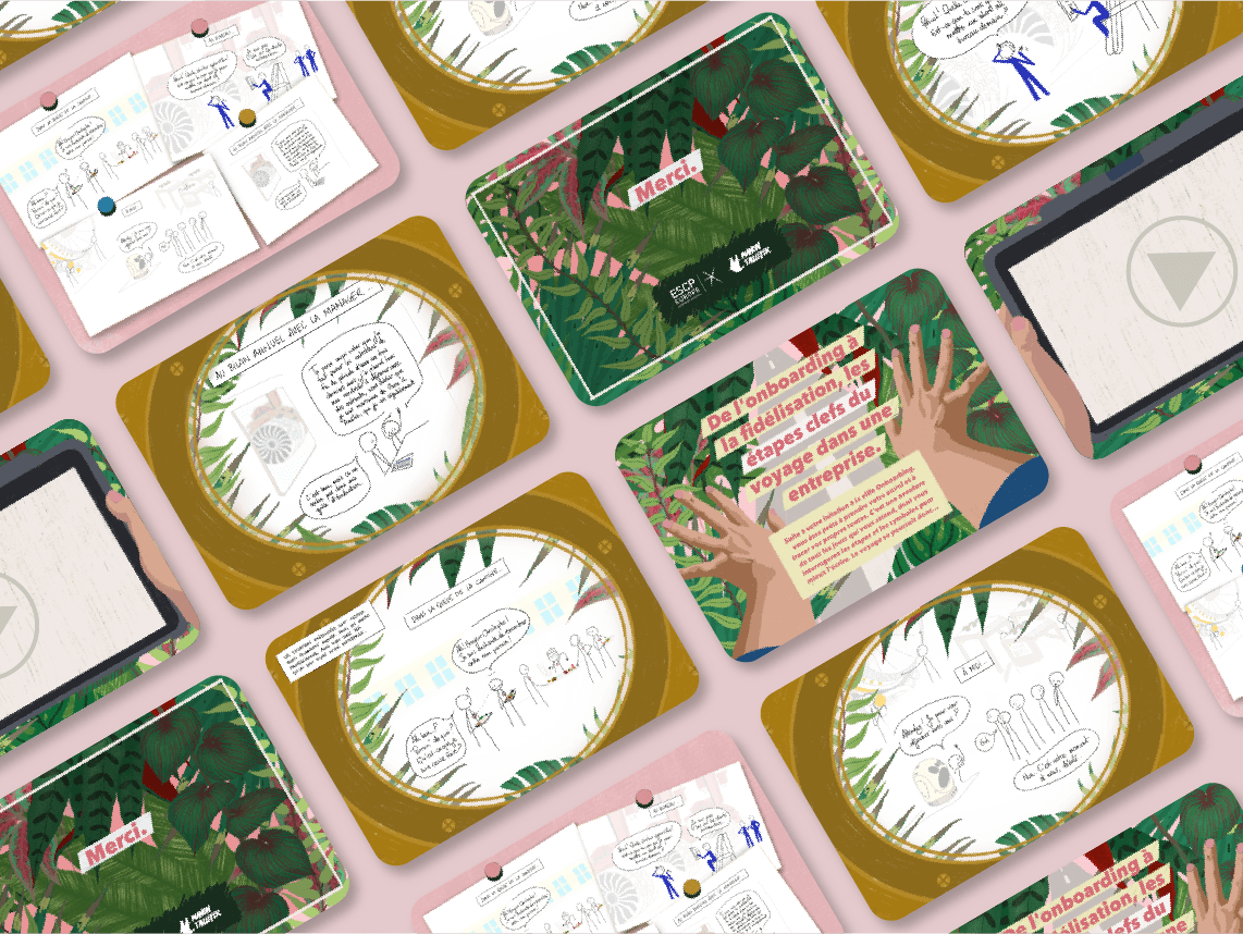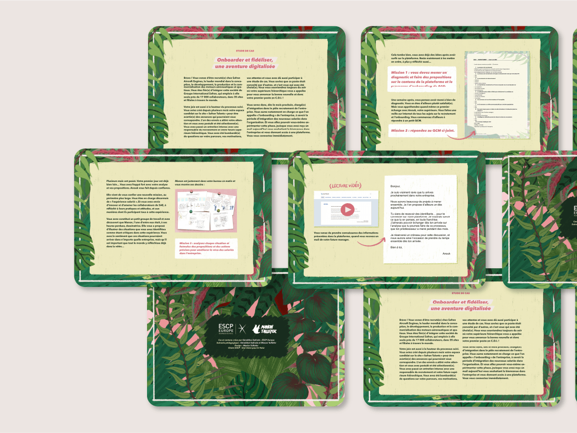 Mission : scénario pédagogique, graphisme, illustrations. Prix de la meilleure étude de cas du 30ème congrès de l'AGRH 👉 https://escp.eu/node/4452 (Projet confidentiel : seuls les éléments publics sont présentés.)